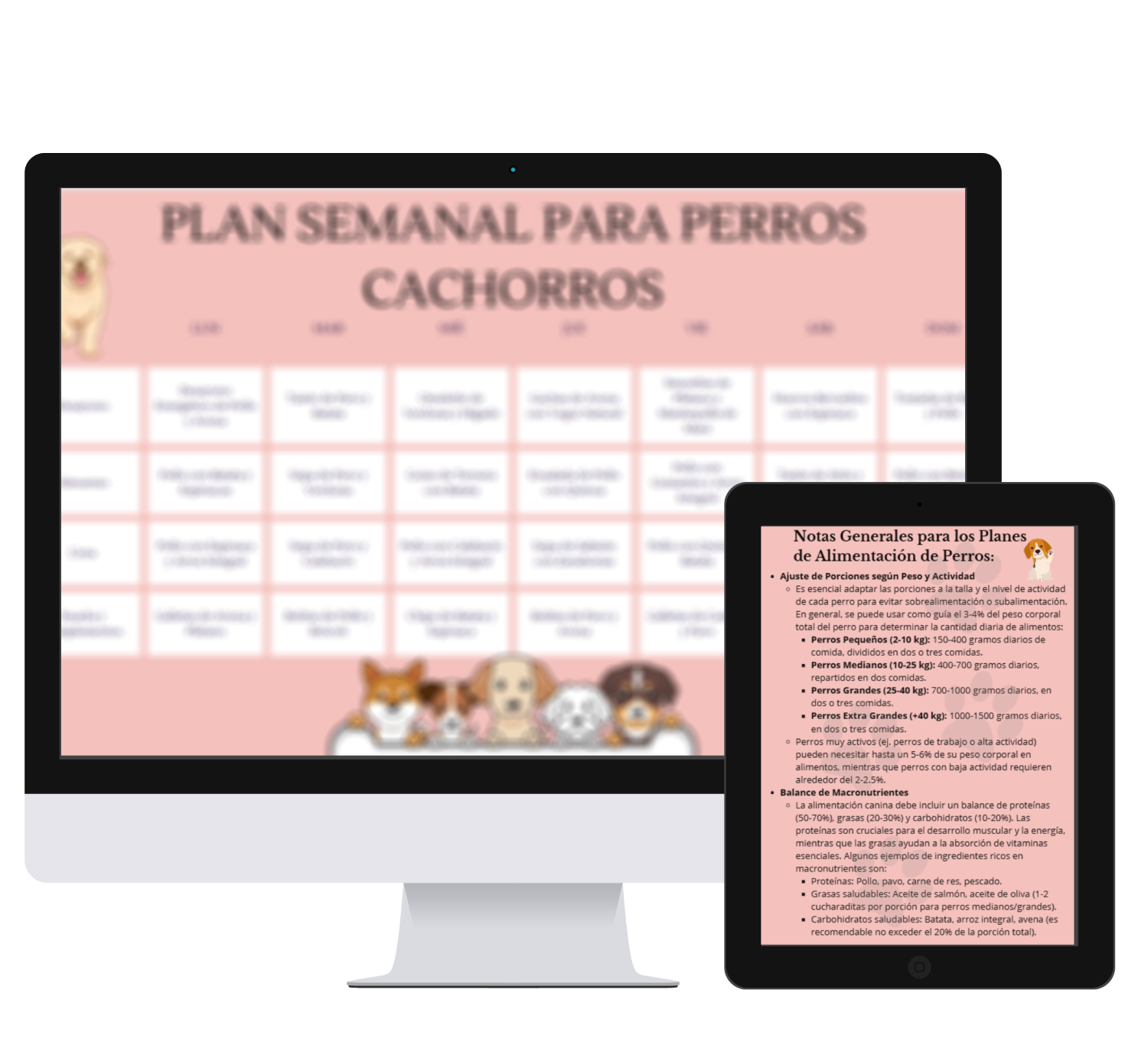 Sabemos que tu tiempo vale mucho. Por eso, esta guía adicional incluye un plan práctico que te permitirá organizar las comidas de tu perro con más facilidad, incorporando variedad y equilibrio a lo largo de la semana.