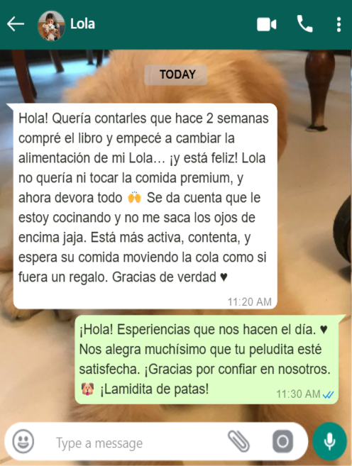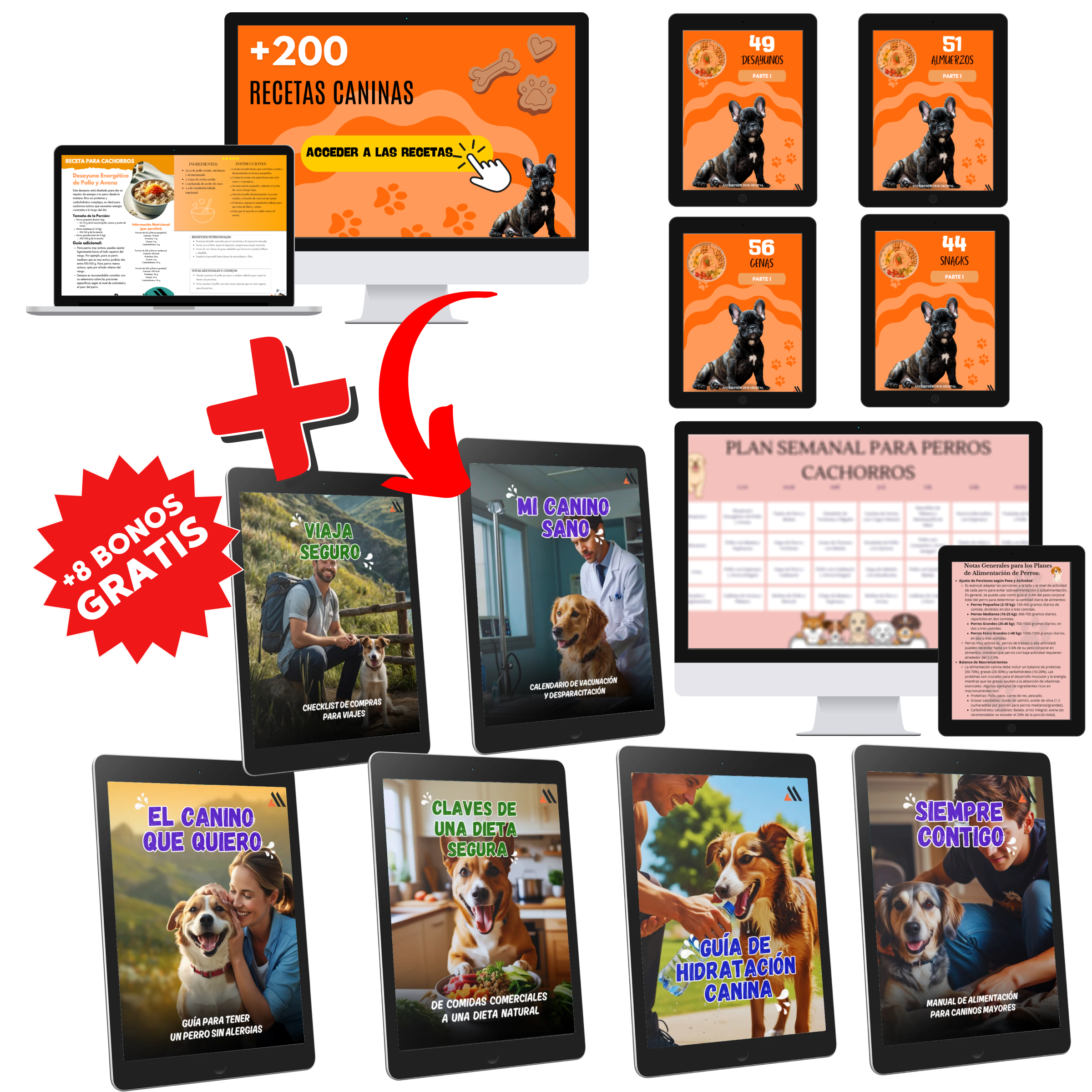 Un libro completo con 49 desayunos, 51 almuerzos, 44 snacks y 56 cenas reveladas en más de 560 paginas, tips, listas prácticas y una ruta clara y amorosa para transformar su nutrición en cualquier etada de vida: perros cachorros, adultos y senior. Sin complicaciones, sin ingredientes raros.